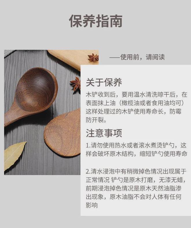 大家收到后先用温水清洗晾干后,在表面抹油(橄榄油或者食用油均可),静置半天左右,再把多余的油擦干净。这样处理过的锅铲更加坚固耐用。