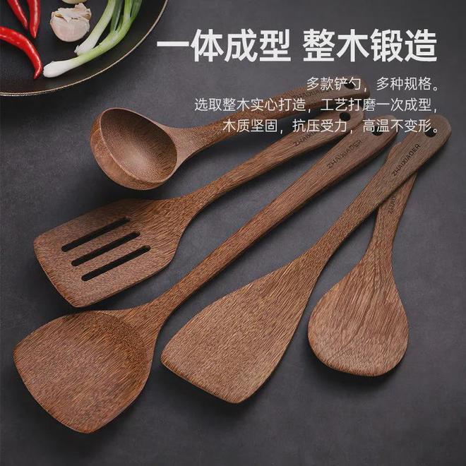 咱们这款锅铲采用原木切割,一体成型,还配套设计了同款鸡翅木饭勺和汤勺,纹理细腻,颜值质感拉满,每次掂在手里都非常舒服。斜面铲口,翻炒更加得心应手。隔热防烫,坚固耐用,久用不开刺不开裂。